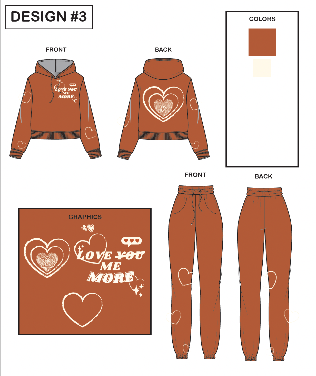 Here's a sneak peek of a design I did for February! You can see my digital sketch and then the 3D rendering of the sweatsuit. What do yall think?